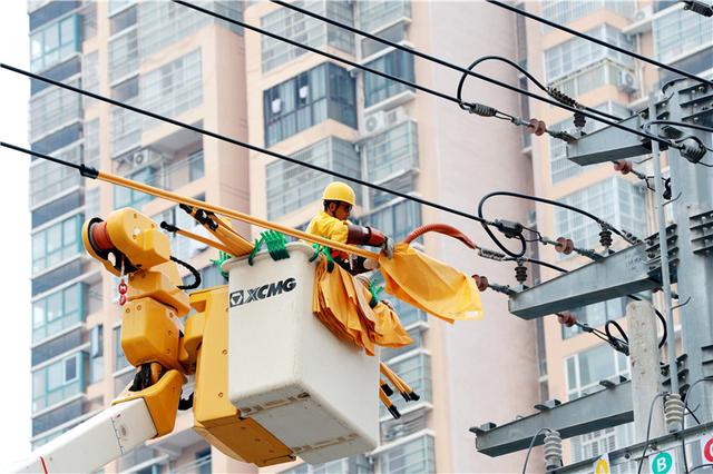 國網利辛縣供電公司帶電作業(yè)員工正在進行帶電懸空搭火工作。劉喆攝