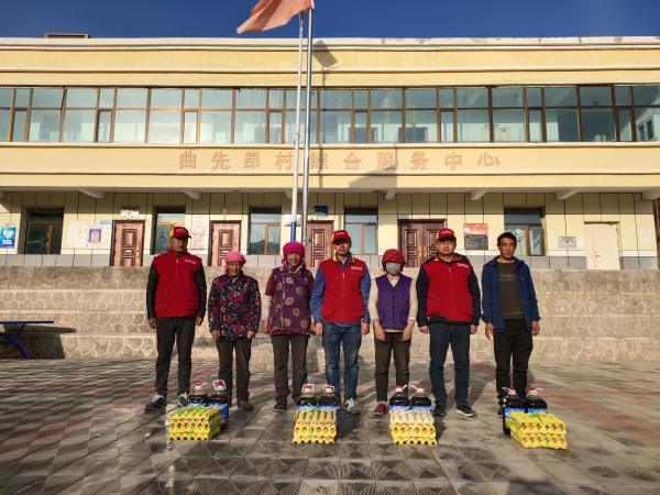 “雞子又長了不少,你們快來看看。”昂日堅措一邊高興地向隊員們展示家里飼養(yǎng)的炫雞,一邊不停地說著感謝,臉上洋溢著幸福的笑容。“上次給我們送來的雞蛋還沒吃完呢,今天你們又來看望我們,這幾年你們給我們送冬菜、送電熱毯、送電飯鍋,真不知道該怎樣感謝你們了!”