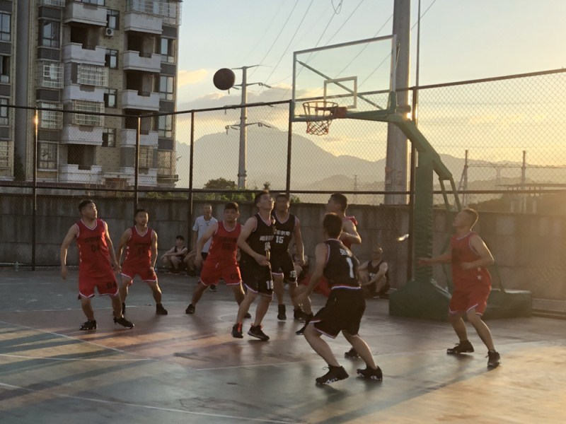 雖然時值酷暑、天氣炎熱,但30多度的高溫卻絲毫未影響隊(duì)員的比賽熱情。6:30,伴著落日的余暉,隨著裁判的一聲哨響,比賽正式開始,雙方隊(duì)員在籃球場上各顯身手,緊張激烈的球賽高潮迭起,比賽場面精彩紛呈,扣人心弦。雙方隊(duì)員高超的傳球技術(shù)、默契的團(tuán)隊(duì)精神、熟練的戰(zhàn)術(shù)配合和精準(zhǔn)的投籃,贏得了在場觀眾的陣陣掌聲。