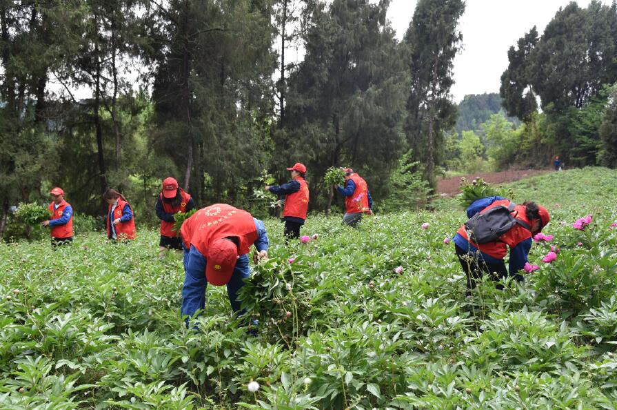 當天下午,樂至公司“紅細胞”志愿服務隊員們來到了芍藥園。“鮮花要保證品相與質(zhì)量,大家收割的時候一定要細致、不要傷及花枝、花苞!”在花園里,志愿者們分工合作,收割、搬運、打包一條龍流水線作業(yè),生機勃勃、含苞吐萼的芍藥花田中,“紅細胞”志愿者的身影散落其間,襯得芍藥花更加明媚動人。