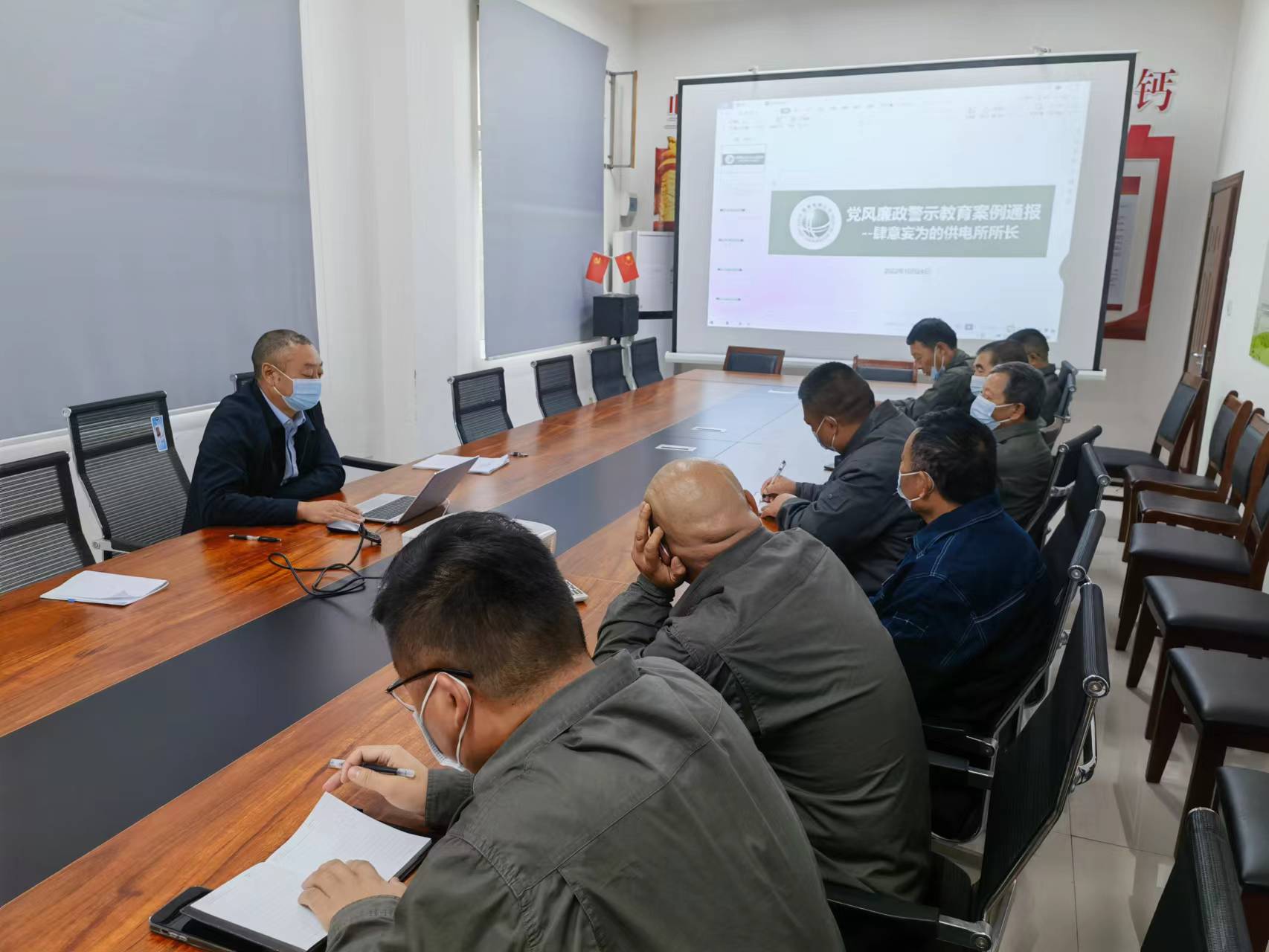 課堂上陶凱同志以案為鑒,講授分析反面案例。并從供電所各崗位廉潔風(fēng)險點防控等入手,強調(diào)對工作中出現(xiàn)的傾向性、苗頭性問題,要抓早抓小、抓細抓實,教育引導(dǎo)大家遵規(guī)守紀(jì)、嚴(yán)于律己,切實做到警鐘長鳴。
