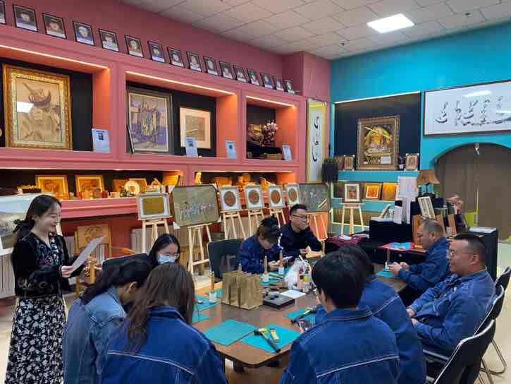 本次活動(dòng)內(nèi)容豐富,黨員干部職工積極前往阿拉善盟非物質(zhì)文化遺產(chǎn)皮雕藝術(shù)傳承研究展示中心參觀并體驗(yàn)非遺文化皮雕技藝。首先,由阿拉善盟非物質(zhì)文化遺產(chǎn)傳承人“皮雕匠人”張浩老師向大家介紹皮雕技藝在阿拉善地區(qū)傳承發(fā)展的歷史以及在展的各種皮雕藝術(shù)品,并現(xiàn)場(chǎng)演示了皮雕制作的基本技法,緊接著帶領(lǐng)大家制作傳統(tǒng)皮質(zhì)鑰匙包。職工們熱情高漲,紛紛動(dòng)手操作,開(kāi)料、刻線、描摹、染色、縫線,皮面和針線來(lái)回穿插,充分體驗(yàn)到了非遺的魅力和手作的樂(lè)趣,最后在緊張刺激的民族團(tuán)結(jié)知識(shí)問(wèn)答題中結(jié)束了本次活動(dòng)。