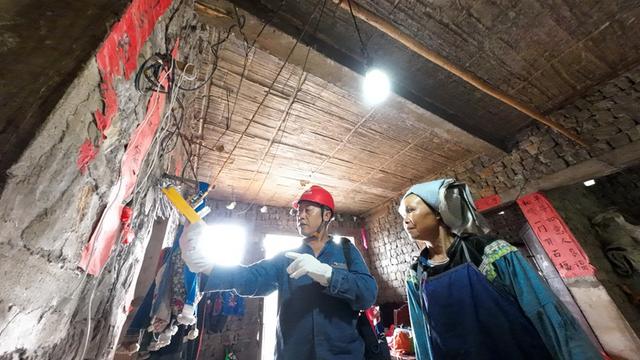 結(jié)對(duì)幫扶人員為農(nóng)戶處理用電故障。