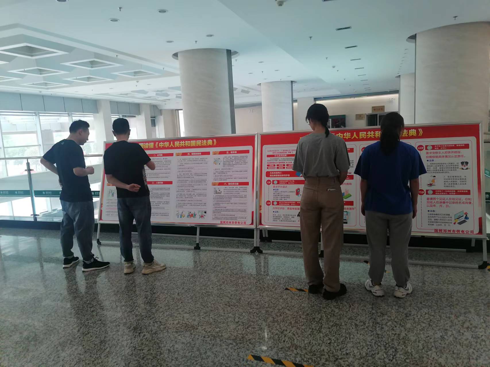 該公司一是召開專題工作會議。召開2024年民法典宣傳工作專題會議,啟動部署民法典宣傳活動。將與專項工作密切相關的法律法規(guī)納入中心組學習,全面宣傳習近平法治思想和民法典等相關法律法規(guī),公司領導班子帶頭學法、講法。二是營造濃厚學習氛圍。在公司各位置的電子屏播放民法典宣傳片,在人群密集的職工食堂、營業(yè)大廳等位置擺放民法典宣傳展板、彩頁,以圖文并茂的形式簡介民法典熱點問題,引導職工關注學習民法典,營造學法、用法、守法的良好氛圍。三是邀請律師以案說法。邀請律師以案說法,圍繞民法典及公司經(jīng)營管理中合同簽訂的法律風險,對供用電合同知識、物權、私人所有權等內容進行了生動講解,幫助相關崗位職工加深對法律的認識和理解。同時設立法律答疑熱線,共計向職工解答民法典中涉及生命健康、財產(chǎn)糾紛、婚姻家庭問題20余項,引導職工辦事依法、遇事找法,推動形成解決問題用法、化解矛盾靠法的良好氛圍。