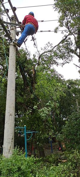 中國(guó)電力網(wǎng)訊 5月15日17時(shí)32分,雷暴天氣造成廣西富川縣朝東鎮(zhèn)、城北兩個(gè)鎮(zhèn)10千伏民主線等3條線路受損停電。接到了故障緊急搶修電話后,南方電網(wǎng)廣西新電力集團(tuán)富川縣公司朝東供電營(yíng)業(yè)所分成兩個(gè)搶修小組趕赴故障現(xiàn)場(chǎng)開(kāi)展搶修工作。搶修人員通過(guò)巡查確定了故障點(diǎn)并立即開(kāi)展搶修。在故障搶修現(xiàn)場(chǎng),趁著雨量減小的有利時(shí)機(jī),在確保安全的前提下,搶修人員分工合作,有條不紊的開(kāi)展著搶修工作,有的人員將倒在線路上的樹(shù)木運(yùn)離現(xiàn)場(chǎng),有的人員登桿作業(yè)接線換瓷瓶。通過(guò)大家的共同努力,于5月16日晚20時(shí)46分完成搶修任務(wù),恢復(fù)了近5000個(gè)用電戶供電,以實(shí)際行動(dòng)踐行了“人民電業(yè)為人民”的宗旨。