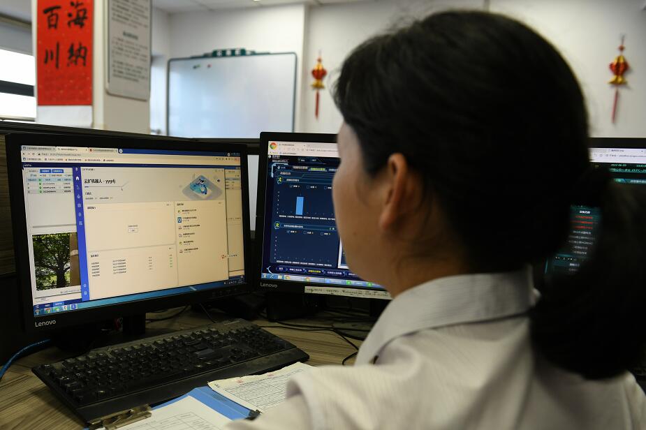 12月26日,在國(guó)網(wǎng)青海省電力公司海東區(qū)域周轉(zhuǎn)庫(kù)中,智能搬運(yùn)機(jī)器