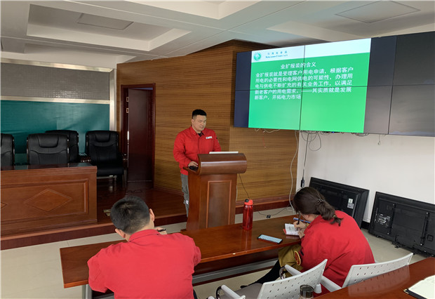 隨后,分局二級(jí)工程師劉福軍為大家?guī)砹艘?ldquo;配電網(wǎng)架空線路檢修及驗(yàn)收”為主題的生產(chǎn)技術(shù)課程,他主要對(duì)線路桿塔各項(xiàng)設(shè)備參數(shù)、具體安裝位置、安裝規(guī)范等技術(shù)問題進(jìn)行講解,同時(shí)針對(duì)學(xué)員提出的種種問題,進(jìn)行了詳細(xì)的解答,使全體青工對(duì)線路檢修及驗(yàn)收有了更深入地了解。緊接著,由分局用電檢查班青工郭介愚為大家講解了以“業(yè)擴(kuò)報(bào)裝”為主題的用電營(yíng)銷課程,他通過PPT結(jié)合實(shí)際案例的方式,深入淺出的講解了業(yè)擴(kuò)報(bào)裝具體流程及低壓供電方案的編寫,使分局青工營(yíng)銷業(yè)務(wù)能力有所提升。