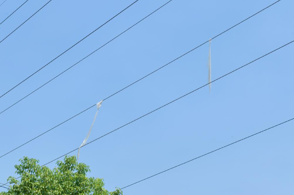 中國電力網(wǎng)訊 8月14日下午,國網(wǎng)余姚市供電公司公司輸配電運(yùn)檢中心員工巡視線路時發(fā)現(xiàn),在陸埠鎮(zhèn)工業(yè)園區(qū)35千伏洲車3825線23至24號塔之間的線路上有兩股異物纏繞,一旦連接兩根導(dǎo)線,極易引發(fā)線路跳閘,危及電網(wǎng)安全穩(wěn)定運(yùn)行。