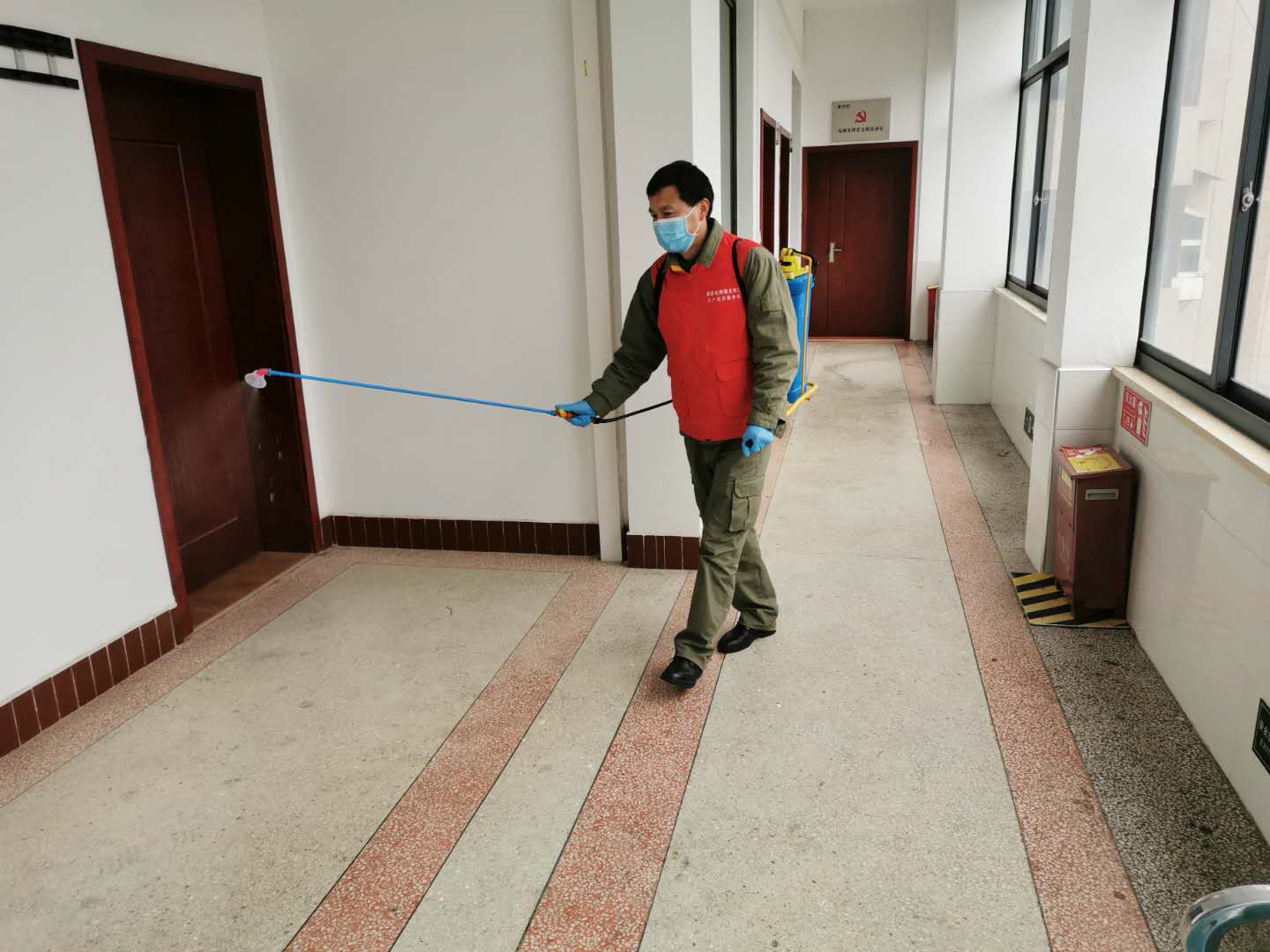 輪班消毒的值班人員搶修去了,他二話(huà)不說(shuō),背上消毒藥箱到消毒路段一棟樓地噴灑消毒。