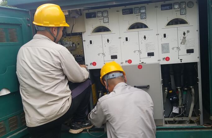 圖為工作人員在10千伏工業(yè)園II回02號環(huán)網(wǎng)柜內(nèi)安裝二遙設(shè)備