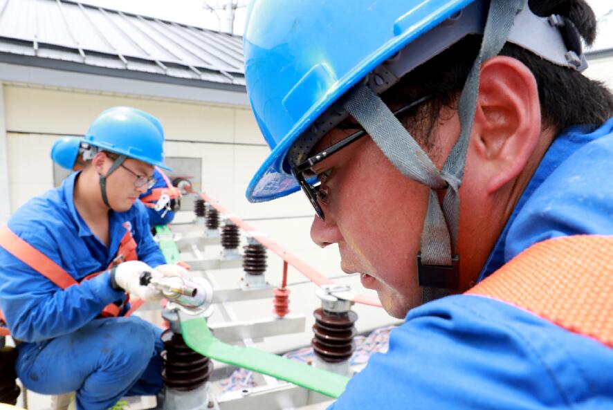 中國電力網(wǎng)訊 8月12日,安徽省定遠縣二龍回族鄉(xiāng)中湯村,國網(wǎng)定遠縣供電公司新建35千伏二龍變電站項目正在緊張施工中。當(dāng)日,攝氏33°高溫下,2臺主變壓器臺上,瓦斯噴燈的火苗呼呼作響,高空作業(yè)人員渾身汗水濕透,正在對母線鋁排進行絕緣化處理。變電站控制室內(nèi),專業(yè)技術(shù)人員二次側(cè)安裝調(diào)試正在同步進行。