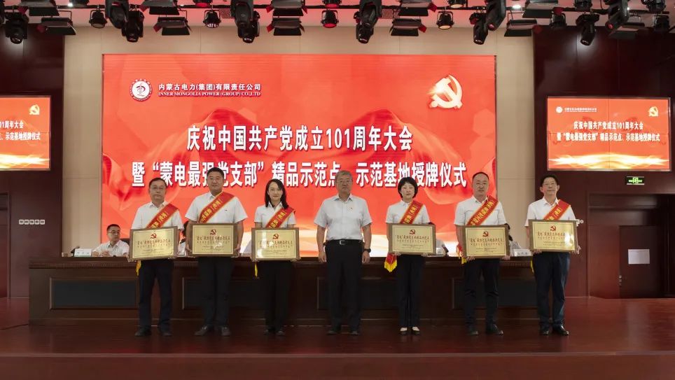 本網訊 6月29日,內蒙古電力集團公司黨委召開慶祝中國共產黨成立101周年大會暨“蒙電最強黨支部”精品示范點、示范基地授牌儀式,慶祝中國共產黨成立101周年,對集團公司“蒙電最強黨支部”精品示范點和示范基地進行表彰授牌。