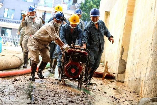 國(guó)網(wǎng)湖南婁底供電公司員工在平江縣桂花學(xué)校搶修中運(yùn)送發(fā)電機(jī)。