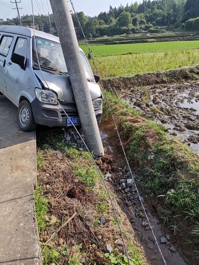 當(dāng)日早上7時(shí)10分,樂安縣供電公司接到事故報(bào)告:一輛面包車行駛時(shí)不慎將10千伏荷塘線47號桿撞斷,導(dǎo)致230余戶居民電力供應(yīng)中斷。