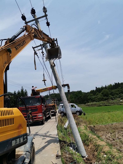 險(xiǎn)情就是命令。敖溪供電所所長助理曾海林迅速組織搶修人員趕赴事故現(xiàn)場。7時(shí)25分,供電員工抵達(dá)現(xiàn)場,立即啟動(dòng)突發(fā)事故搶修預(yù)案,并在現(xiàn)場 拉起了警戒線,避免車輛、行人靠近。確?,F(xiàn)場安全措施到位后,曾海林協(xié)調(diào)挖掘機(jī)、吊車等設(shè)備就位,準(zhǔn)備電桿、導(dǎo)線等施工材料,做好搶修前的各項(xiàng)準(zhǔn)備工作。