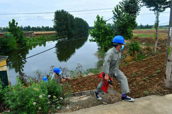“陳書記,昨天下雨無法施工,我們現(xiàn)在在陳廟一級(jí)站,準(zhǔn)備開展專變表箱表計(jì)和互感器安裝工作,請(qǐng)?jiān)S可斷開專變跌落保險(xiǎn)。”6月10日上午,國網(wǎng)湖北老河口市供電公司薛集供電所營銷班長李永久和同事站在薛集鎮(zhèn)陳廟村一級(jí)提灌泵站旁,撥通了陳廟村書記陳豐功的電話。