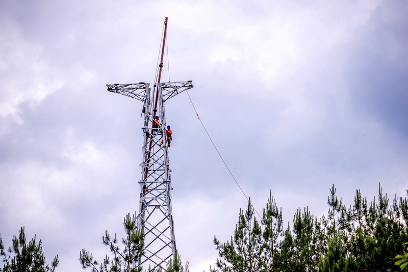 中國電力網(wǎng)訊 6月10日,室外氣溫高達28攝氏度,在四川省巴中市通江縣陳河鎮(zhèn)下江口村10社,國網(wǎng)通江縣供電公司施工人員有序開展涪陽變電站一河壩1井線路15號鐵塔組立工作。據(jù)了解,國網(wǎng)四川省巴中市通江縣供電公司積極服務地方經(jīng)濟發(fā)展,開辟供電服務綠色通道,從報裝申請、供電方案確定等方面提供優(yōu)質(zhì)高效的“一條龍”辦電服務,為重點項目建設(shè)提供用電保障。程聰攝