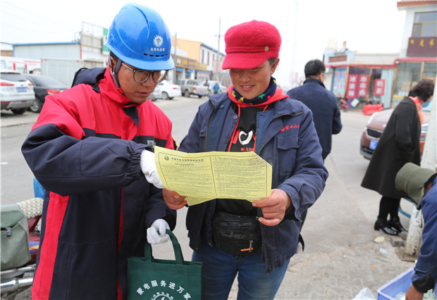 在活動現(xiàn)場,工作人員通過設立展板、發(fā)放宣傳材料、現(xiàn)場答疑等方式,走訪商戶、居民,向用戶介紹供電企業(yè)優(yōu)化營商環(huán)境舉措、電價政策、“三零三省”服務等內(nèi)容,并現(xiàn)場指導客戶通過手機使用“蒙電e家”APP辦理相關業(yè)務。每到一處,分局員工都十分耐心的宣傳講解日常生活中的安全用電常識和常見的用戶側用電故障發(fā)生原因和處理方式。對安裝新式智能電能表的用戶,詳細講解了電表的充值方式、使用方法和注意事項等。此外,分局員工在走進臨街商鋪時,還向商業(yè)用戶宣貫一般工商業(yè)降價政策和疫情期間電價優(yōu)惠政策、降價措施及時限;向用戶講解了《電力設施保護條例》《電力法》等相關規(guī)定。此次宣傳活動,共走訪了居民和商戶近百戶,發(fā)放和張貼安全用電、降價信息等宣傳圖冊一百余冊。