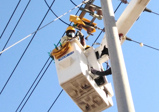 中國(guó)電力網(wǎng)訊  1月7日,濰坊壽光地區(qū)氣溫驟降至零下19攝氏度,國(guó)網(wǎng)壽光市供電公司帶電作業(yè)人員在10千伏金華線19號(hào)桿,為臺(tái)頭鎮(zhèn)某防水企業(yè)進(jìn)行更換隔離刀閘作業(yè),及時(shí)消除線路缺陷,保障企業(yè)客戶寒潮期間安全可靠用電。