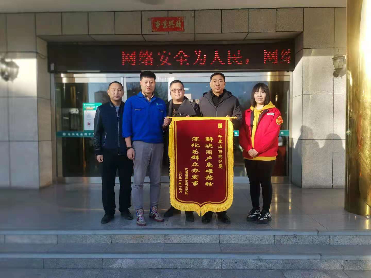 中國(guó)電力網(wǎng)訊 近日,烏海市巴音溫都爾嘎查五隊(duì)物業(yè)公司宋經(jīng)理及村民何茂將一面印有“解決用戶用戶急難愁盼、深化為群眾辦實(shí)事”的錦旗送到烏海市千里山供電分公司副經(jīng)理默日根、俞佳麗的手中,感謝該公司在巴音溫都爾嘎查五隊(duì)用電的辦理過(guò)程中給予的大力支持和優(yōu)質(zhì)、高效的供電服務(wù)。