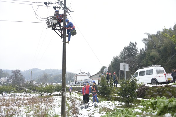 在一些鄉(xiāng)鎮(zhèn)山區(qū),由于海拔較高,幾乎所有花草樹木、房屋良田都在一夜之間白了頭。被積雪壓斷的樹竹、壓彎的毛竹等造成山區(qū)、鄉(xiāng)鎮(zhèn)多處電力設(shè)施受損,國網(wǎng)撫州市南豐縣供電公司迅速啟動(dòng)應(yīng)急響應(yīng),多方聯(lián)動(dòng),組織搶修人員對受冰雪影響的故障線路進(jìn)行全面巡視和應(yīng)急搶修,爭取在最短時(shí)間內(nèi)恢復(fù)電力供應(yīng)。