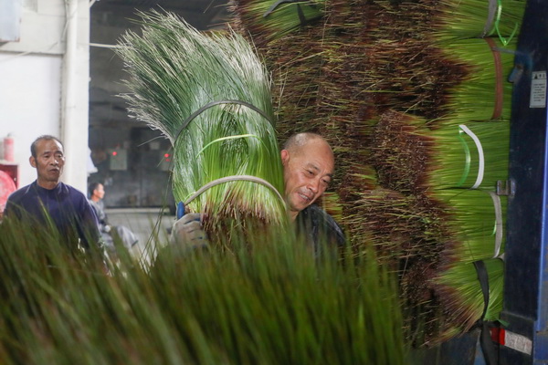 藺草是寧波海曙區(qū)的傳統(tǒng)經(jīng)濟(jì)特產(chǎn),也是出口創(chuàng)匯的主要農(nóng)產(chǎn)品。目前有各類藺草加工企業(yè)80余家,產(chǎn)業(yè)規(guī)模達(dá)20億元,聯(lián)系帶動(dòng)農(nóng)戶3萬余戶,是全國最大的藺草生產(chǎn)和出口基地。眼下正是藺草收割的黃金季節(jié),“割草客”們從全國各地趕來,開啟為期一個(gè)月的藺草收割之旅。“在這里干一個(gè)月時(shí)間,差不多能有近萬元的收入。”來自江西的“割草客”說道。