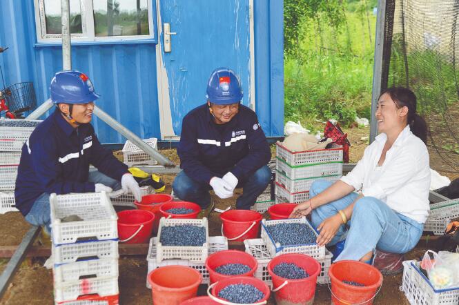 7月13日,在黑金河林場中藥材生產(chǎn)示范基地,種植戶孫靜和村民正忙著采摘越橘。“越橘從培育到種植再到儲存,都離不開電。”孫靜說。