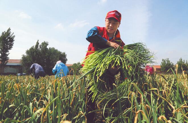 2017年年初,白橋鎮(zhèn)引入“龍頭企業(yè)+基地+合作社+農(nóng)戶”的發(fā)展模式。大蒜深加工龍頭企業(yè)與村里的合作社、大蒜種植大戶簽訂協(xié)議,保價(jià)收購大蒜,并將大蒜加工成價(jià)值更高、便于運(yùn)輸和儲存的產(chǎn)品,讓當(dāng)?shù)胤N植戶增收。