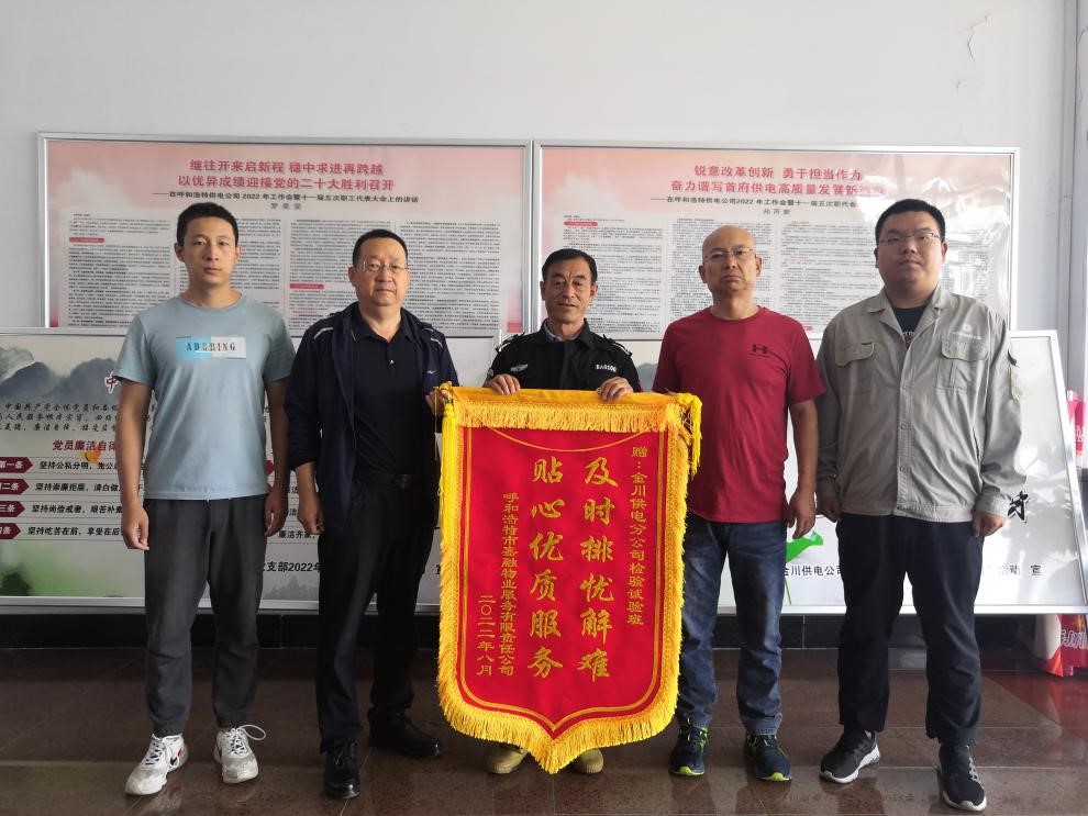 中國電力網(wǎng)訊 近日,金川供電分公司收到了來自呼和浩特市嘉融物業(yè)服務(wù)有限責(zé)任公司的致謝錦旗——“及時(shí)排憂解難貼心優(yōu)質(zhì)服務(wù)”,該物業(yè)公司的兩名工作人員作為代表向金川供電分公司迅速解決花樣年華小區(qū)停電故障表示感謝。