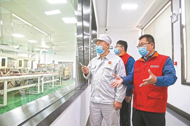 供電員工查看中裕公司生產(chǎn)車間用電設備運行情況
