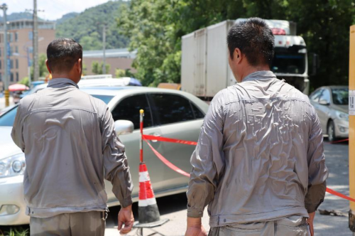 經(jīng)過持續(xù)一小時(shí)的高溫作業(yè),接線任務(wù)順利完成。兩名作業(yè)人員熱得直喘氣,被曬得通紅的臉上,汗水止不住地流,厚重的絕緣披肩下,工作服被汗水浸透,脫下的絕緣手套里更是倒出了一打汗水。略顯吃力地脫下黏在身上的工作服后,工作班成員葉曉聰長長地舒了一口氣:“我們每天做一個(gè)任務(wù)就得換一套衣服,任務(wù)多的話一天要換五六套衣服,沒辦法,衣服都被汗水濕透了。”正說著,他和工作班成員徐華一起用力擰著脫下來的衣服。“跟洗衣服似的,把衣服擰干晾曬繼續(xù)穿!”一旁的徐華打著赤膊,不好意思地笑了。
