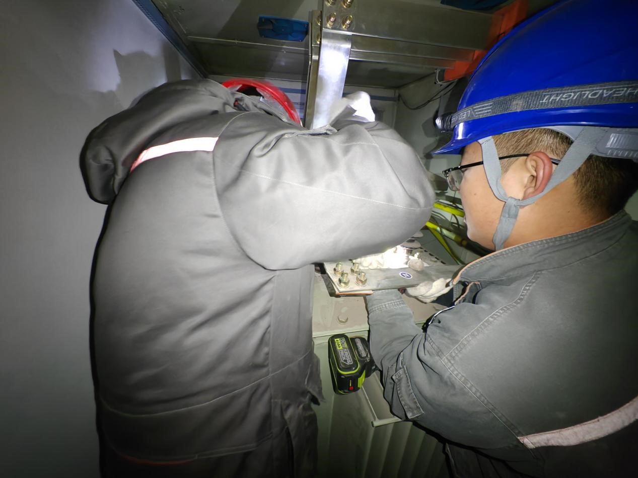 接到任務后,“電靚暖城”共產(chǎn)黨員服務隊第一時間趕往現(xiàn)場,經(jīng)過現(xiàn)場勘查發(fā)現(xiàn),由于大雪極寒天氣,居民取暖用電量急速攀升,導致負荷不均勻,小區(qū)箱變低壓母排燒損導致停電。由于夜間光線不足,給搶修工作增加了難度。康巴什供電公司生產(chǎn)技術室迅速確認搶修方案,組織人員有序投入到搶修工作中,同時在供電服務群中向客戶實時反饋搶修進度和現(xiàn)場工作照片,得到了廣大群眾的理解和支持,消除了群眾對突發(fā)停電存在的疑慮。“天寒地凍家里突然停電,感覺心里都是涼的,看到你們過來,心里就像吃了定心丸,看到了希望。”神華小區(qū)87號樓業(yè)主說。