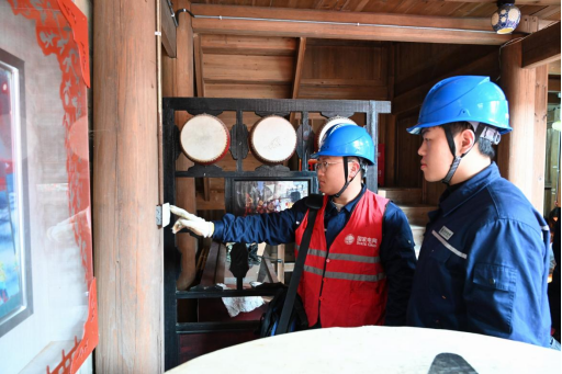 國(guó)網(wǎng)邵武市供電公司員工在和平戲院檢查用電設(shè)備安全。(朱麗)