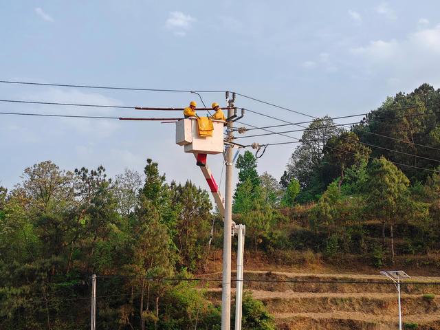 南方電網(wǎng)興仁供電局工作人員對(duì)鯉魚(yú)壩村低電壓農(nóng)網(wǎng)改造線(xiàn)路進(jìn)行帶電作業(yè)安裝現(xiàn)場(chǎng)。