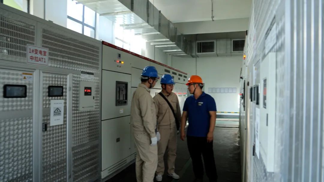 “設(shè)備溫度測量正常,接下來是隱患排查,1號箱,2號箱,3號箱,電路連接無誤……”在中天鋼鐵集團(tuán)(淮安)新材料有限公司生產(chǎn)車間的配電房內(nèi),淮陰供電服務(wù)中心的技術(shù)人員正在對大型配電設(shè)備進(jìn)行檢查。