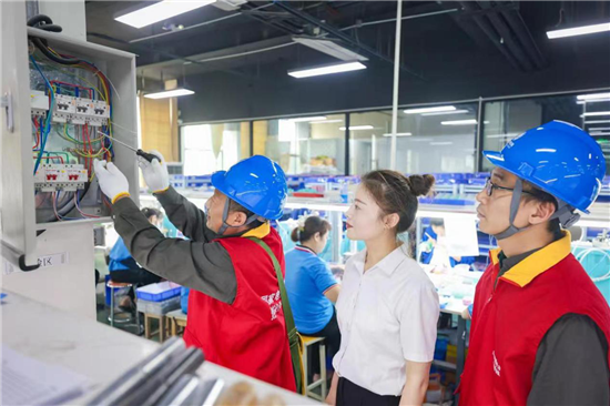 濟(jì)源供電公司員工到山立珠寶首飾供應(yīng)鏈(濟(jì)源市)有限公司生產(chǎn)車間檢查用電設(shè)備