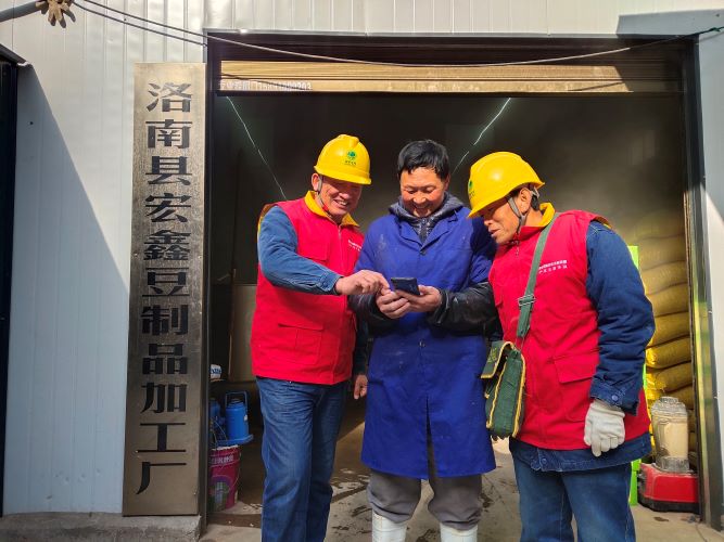 中國電力網(wǎng)訊(通訊員 李孟仁) 在年末生產(chǎn)的關(guān)鍵時期,企業(yè)用電保障至關(guān)重要。12月 26日上午11時,陜西商洛洛南縣景村鎮(zhèn)油泉村的宏鑫豆制品加工廠內(nèi)一片繁忙景象。此時,國家電網(wǎng)陜西電力張思德共產(chǎn)黨員服務(wù)隊(商洛洛南分隊)景村供電所小隊隊員何清珍、張平亮,身著紅馬甲、頭戴安全帽,背著工具包,帶著萬用表、筆記本和微信群這“三件寶”,走進了生產(chǎn)車間檢查用電設(shè)備。