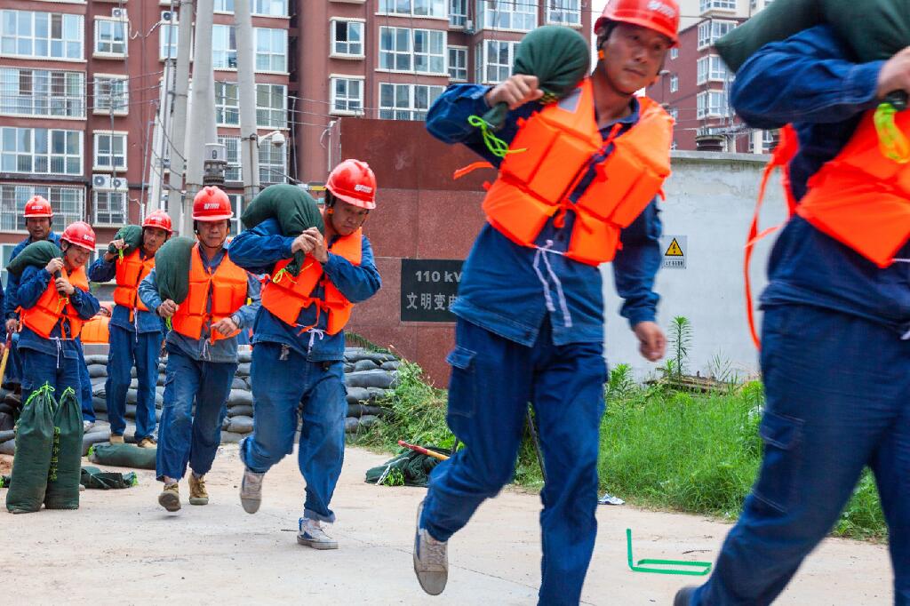 本次演練場景設(shè)置為滑縣遭受短時強降雨天氣,并伴有6到7級大風,降水量100-150mm,滑縣供電公司啟動防汛三級預(yù)警。110千伏變文明變電站電纜溝積水嚴重,站外雨水倒灌危機站內(nèi)設(shè)備安全運行。該公司防汛應(yīng)急指揮中心立即下令,組織人員趕赴變電站現(xiàn)場,加固防汛擋板,擺放水袋水泵進行電纜溝抽水,增加防汛沙袋快速封堵大門等工作有條不紊開展。在經(jīng)過快速的“防外、疏內(nèi)”后,變電站轉(zhuǎn)危為安,水位下降到正常水平。演練圓滿結(jié)束。
