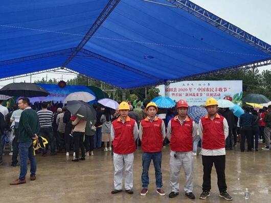 9月24日,新田縣2020年“中國農民豐收節(jié)”暨首屆“新田蔬菜節(jié)”慶?;顒釉邶埲?zhèn)東升村正式拉開序幕,國網(wǎng)新田縣供電公司共產(chǎn)黨員服務隊堅守活動現(xiàn)場,全程值守,確保供電萬無一失。