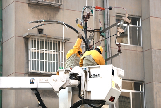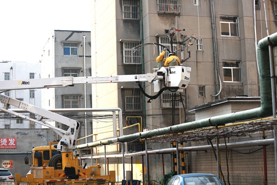 中國電力網(wǎng)訊 1月6日,濰坊市壽光地區(qū)氣溫出現(xiàn)“斷崖式”下跌,氣溫降至零下17攝氏度。在壽光市圣城街道某小區(qū),國網(wǎng)壽光市供電公司帶電作業(yè)人員冒著嚴(yán)寒對10千伏城一線115號臺區(qū)帶電更換電纜,進一步提升線路安全供電能力,為小區(qū)居民冬季電采暖用電提供堅強保障。