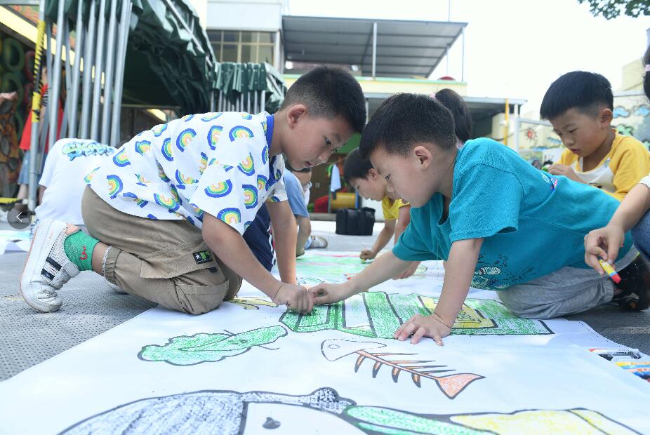 在活動(dòng)中,志愿者們還鼓勵(lì)孩子爭(zhēng)做傳播環(huán)保節(jié)能的小小宣傳員,通過(guò)親手制作的宣傳畫(huà),把今天學(xué)到的知識(shí)分享給爸爸媽媽以及其他小伙伴。不遠(yuǎn)處,小宣傳員們手拿蠟筆,在長(zhǎng)畫(huà)布上描繪“節(jié)能低碳”,有節(jié)約用電、垃圾分類、節(jié)約用水等不同類別,孩子們紛紛畫(huà)出獨(dú)屬于自己的宣傳畫(huà)。
