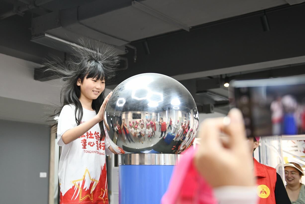 “摸一個球居然能讓頭發(fā)立起來,太神奇了。”同學(xué)們懷著既忐忑又好奇的心情,紛紛進行了靜電球體驗,連連稱奇。一個個互動游戲,讓同學(xué)們爭相體驗,樂此不疲,他們摩擦起電讓頭發(fā)起飛的樂趣,感受用自己的力量產(chǎn)生電的魅力,也讓他們對電有了一個更深入的認識。隨后,志愿者還通過提前設(shè)置的簡單電力知識互動問答,在講解并分析中,讓小朋友們進一步了解用電安全,從而養(yǎng)成節(jié)約用電的好習(xí)慣。