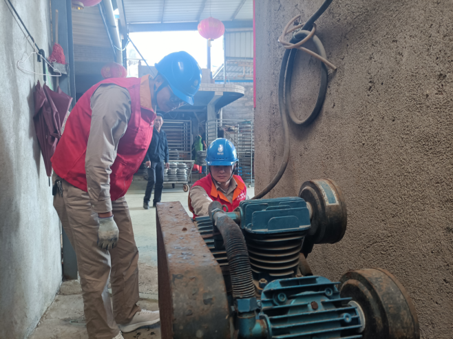 圖為漳州供電公司員工為深土鎮(zhèn)企業(yè)檢查用電安全措施。(黃哲琦)