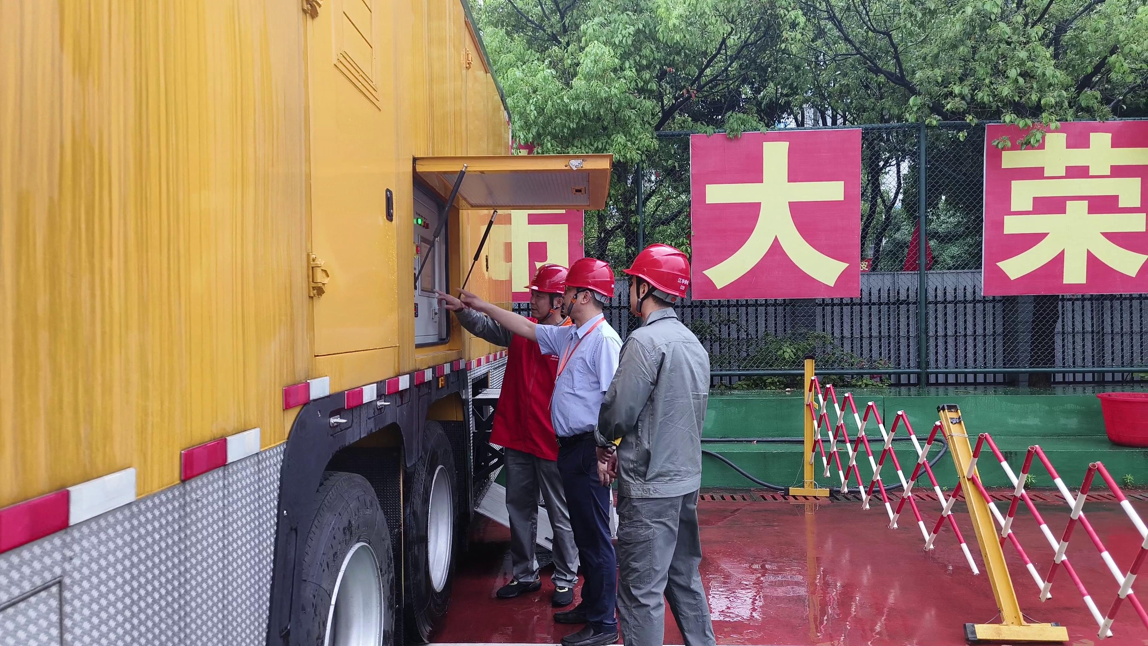 在江華一中體育場,這里停放著一臺630kVA移動箱變車和一臺500Ah移動式儲能電源車,國網(wǎng)江華供電公司工作人員正在對其進行紅外測溫。這是從永州和衡陽調(diào)配過來的,相當于接上了超大容量的“移動充電寶”,能夠?qū)崿F(xiàn)毫秒級接入、零閃動的效果。此外,還為各個活動場館、酒店增設了發(fā)電車、發(fā)電機等各類UPS直流電源設備,切實做好保電應急處置,確保用電萬無一失。