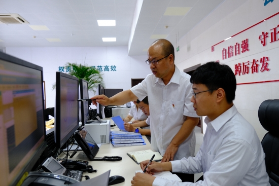 國網(wǎng)霸州供電公司工作人員密切關(guān)注電網(wǎng)運(yùn)行。 趙亞彬攝