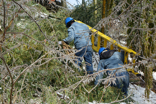該公司組織突擊隊積極應(yīng)對寒潮, 對受損電力設(shè)施進(jìn)行搶修