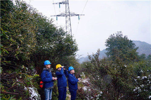 國網(wǎng)鷹潭供電公司輸電運維人員通過“人工+無人機”的巡檢方式,對保障鷹廈電氣化鐵路供電的110千伏白云、龍鐵線開展特巡(萬智輝 攝)