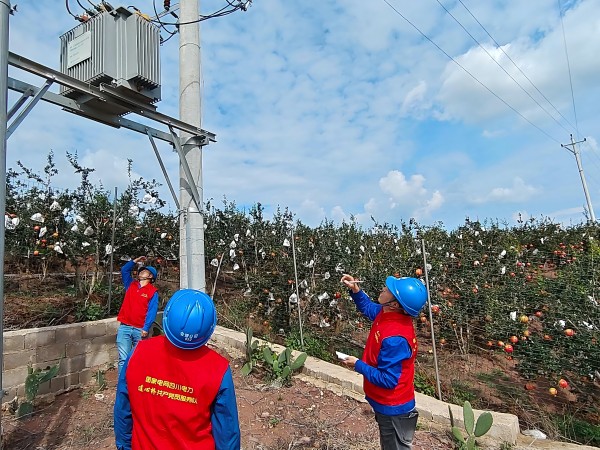 在會(huì)理市通安鎮(zhèn)石榴種植基地,隊(duì)員們對(duì)重要輸電通道、重載設(shè)備開展線路設(shè)備運(yùn)維巡視工作。針對(duì)用戶抽水灌溉用電、老宅電路維護(hù)等問題,提供上門服務(wù),切實(shí)解決群眾用電問題,保障群眾日常生產(chǎn)生活用電。