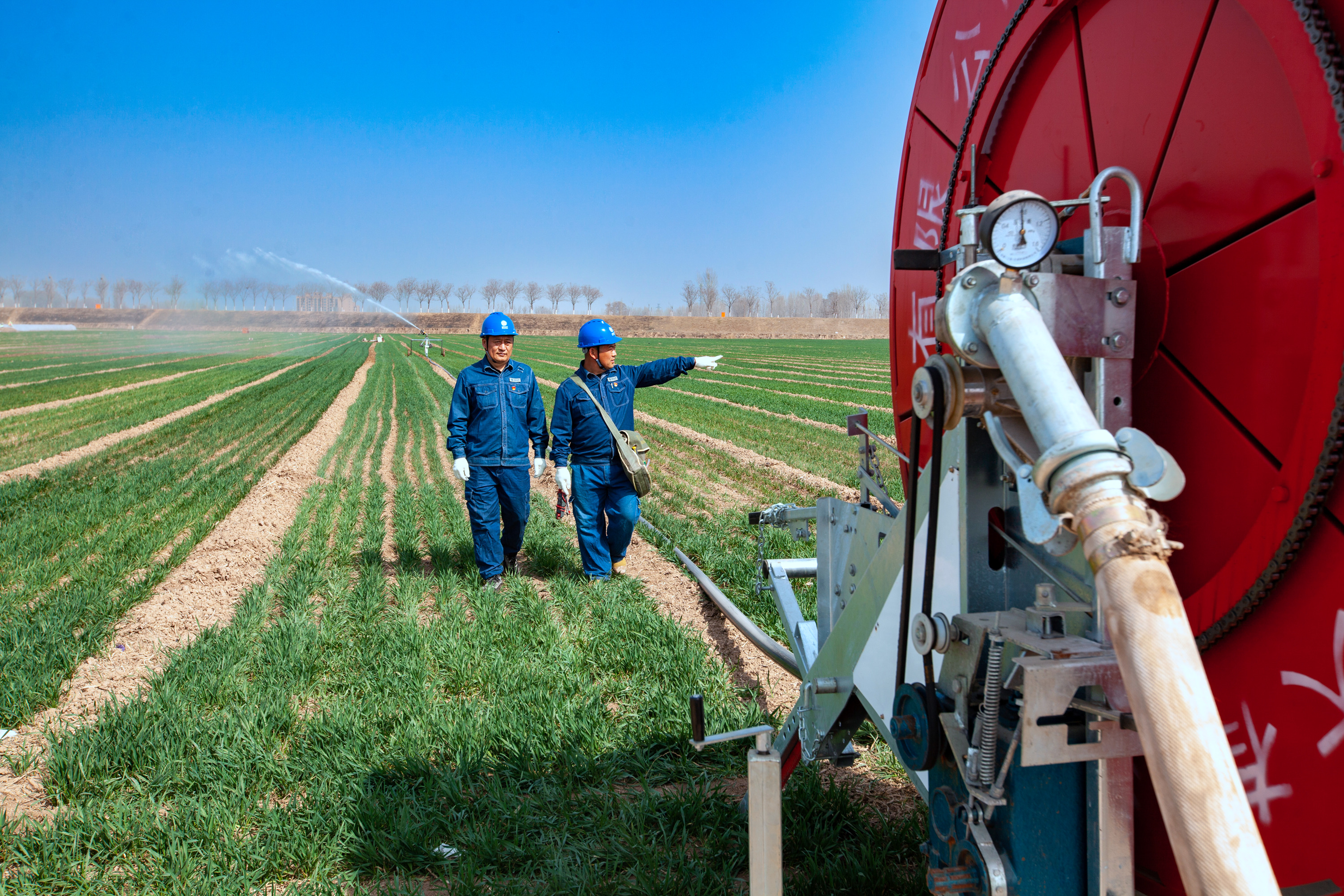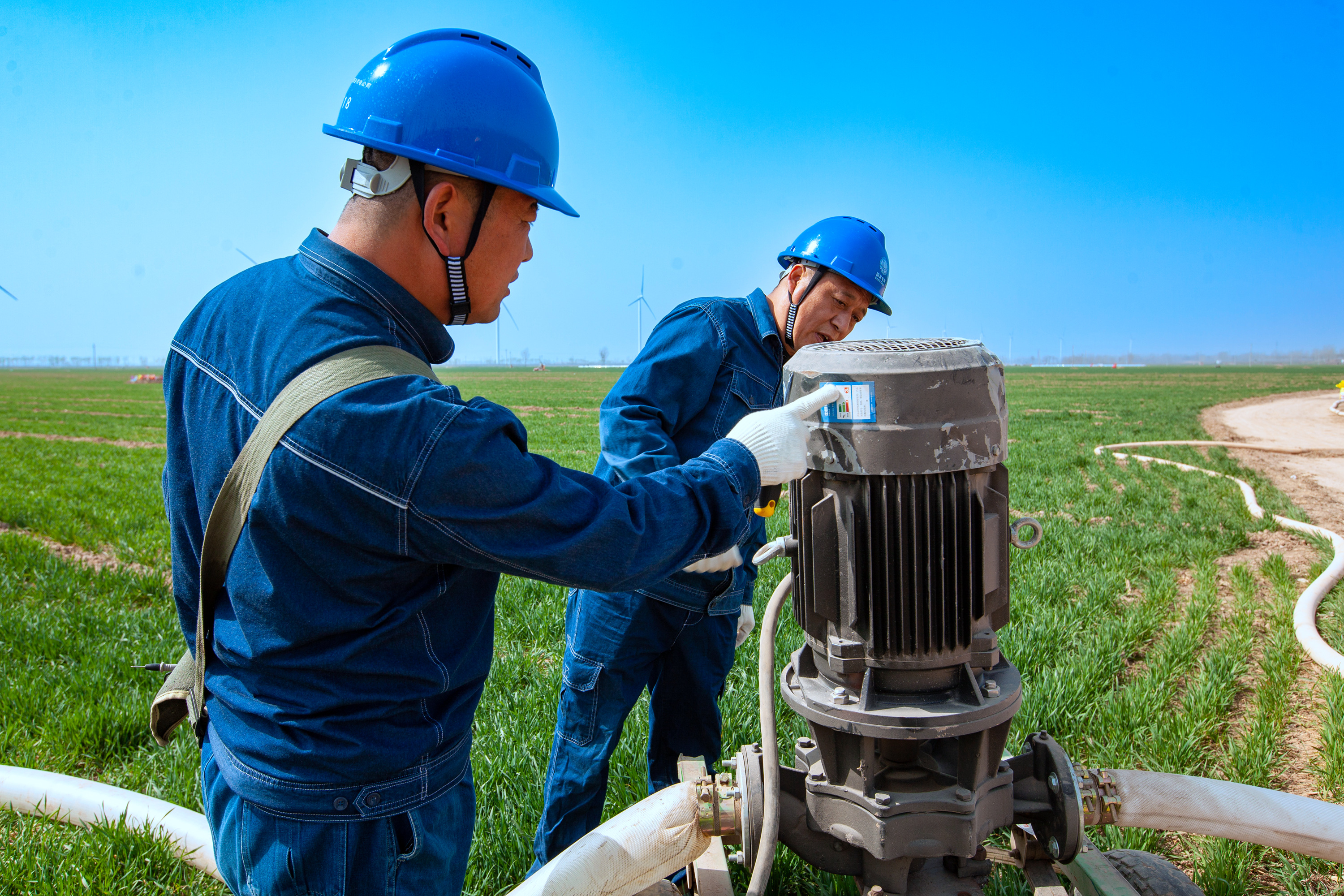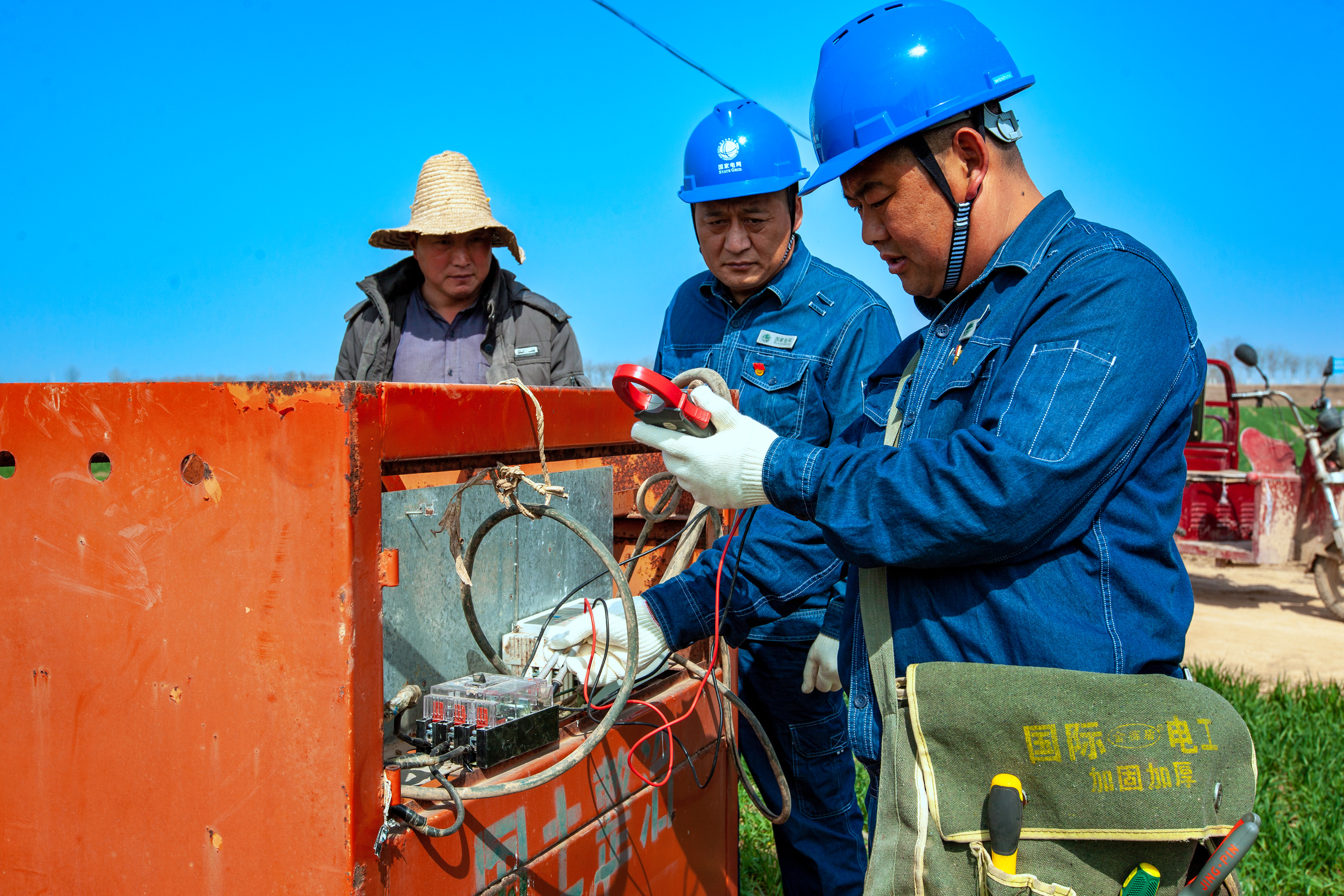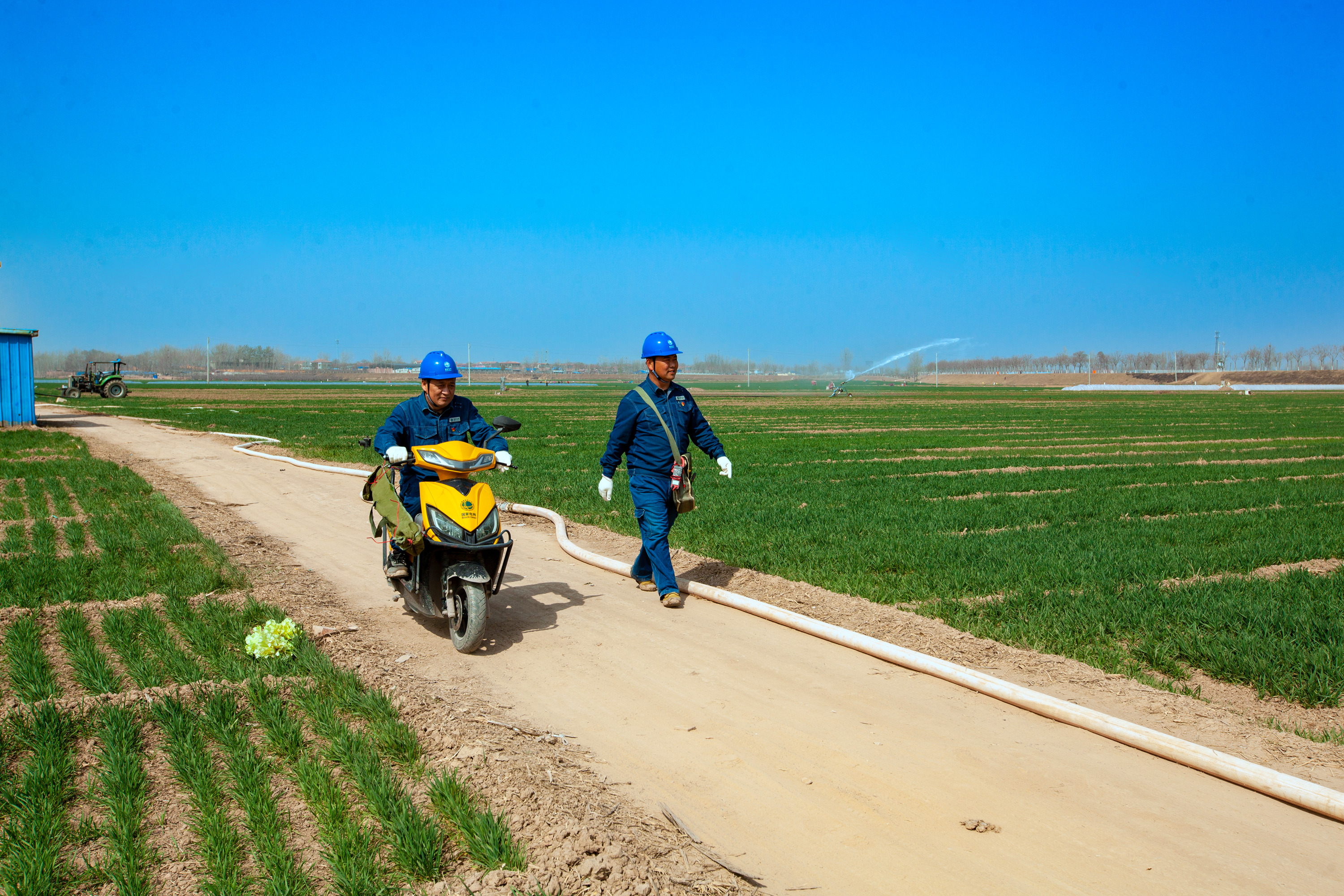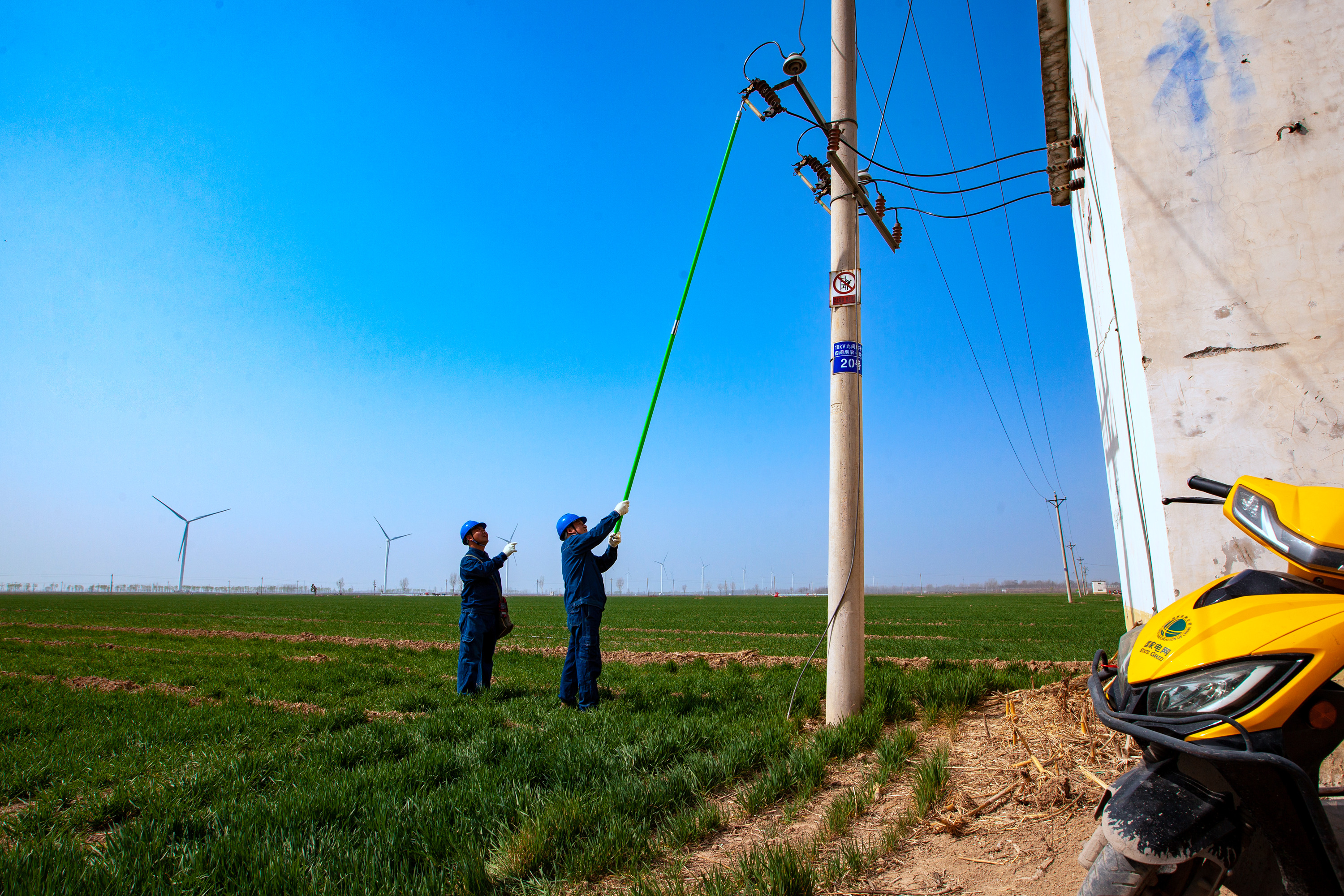 3月9日,在河南滑縣四間房鎮(zhèn)麥田里,國網(wǎng)滑縣供電公司工作人員呂衛(wèi)兵、韓記偉在檢查農(nóng)田機井和噴灌裝置用電設備時,發(fā)現(xiàn)一處安全隱患,馬上糾正并對客戶進行用電安全知識告知。