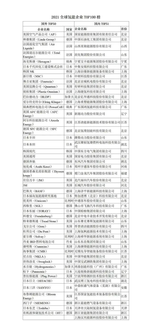 12月9日,首屆氫能國際(中國·南海)主題峰會(huì)暨2021全球氫能企業(yè)TOP 100榜發(fā)布會(huì)在佛山市南海區(qū)舉辦。該榜單由地方政府、企業(yè)、科研機(jī)構(gòu)等多方聯(lián)合發(fā)布,集納全球101家氫能企業(yè),將助力匯聚“政產(chǎn)學(xué)研用資”力量,推動(dòng)氫能產(chǎn)業(yè)上下游跨區(qū)域聯(lián)動(dòng)。國家能源集團(tuán)、中國石化、美錦能源等51家企業(yè)上榜!